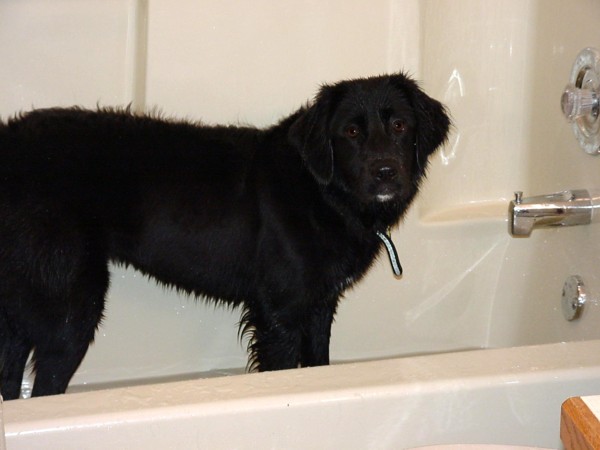 This is something Newfies do. Too lazy to get up and drink. 12/18